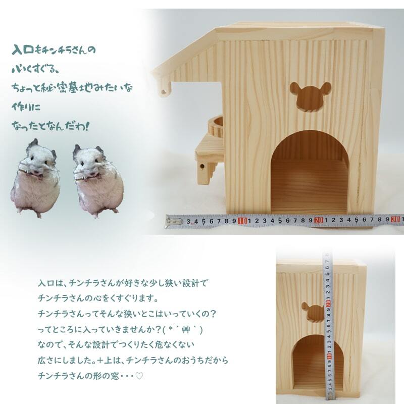 この木製のおうちは、チンチラさんの探検心をつかむアイテムとして